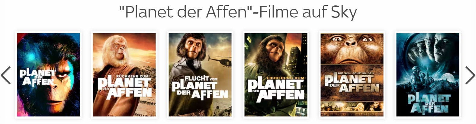 Alle Teile der „Planet der Affen“-Reihe stehen auch jederzeit auf Abruf zur Verfügung.