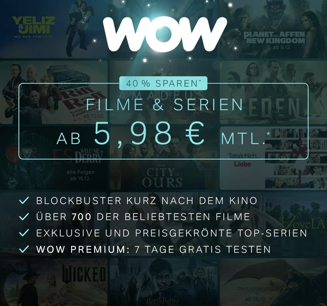- WOW Premium 7 Tage kostenlos freigeschaltet.
