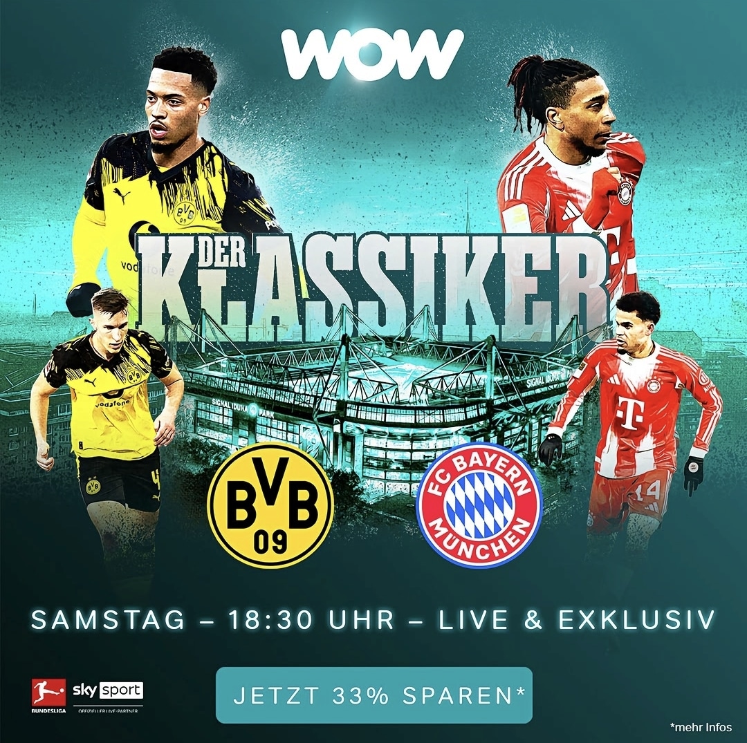 12-Monatsabo: WOW Live-Sport (Kompletter Sky Live-Sport) nur 29,99€ / Monat im 12-Monats-Abo = 33% Rabatt!